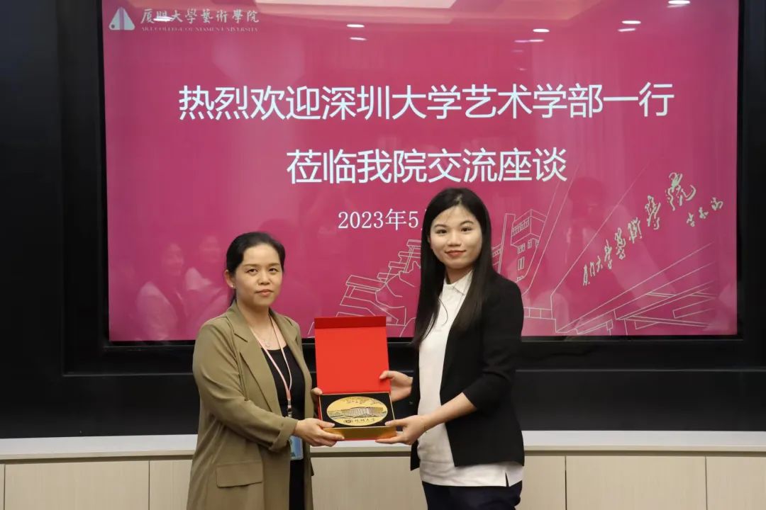 子曰:“有朋自远方来,不亦乐乎。”为迎接深圳大学艺术学部师生的到来,我院准备了由本院同学设计的文创笔记本,对方也赠送了校盘等精美的深大文创。接着,我院从厦大校史剧选段引入,简要介绍厦门大学校史、校园生活与我院学生工作特色与成果,带着深大师生了解厦大的历史人文底蕴和发展现状,生动的讲解引人入胜。