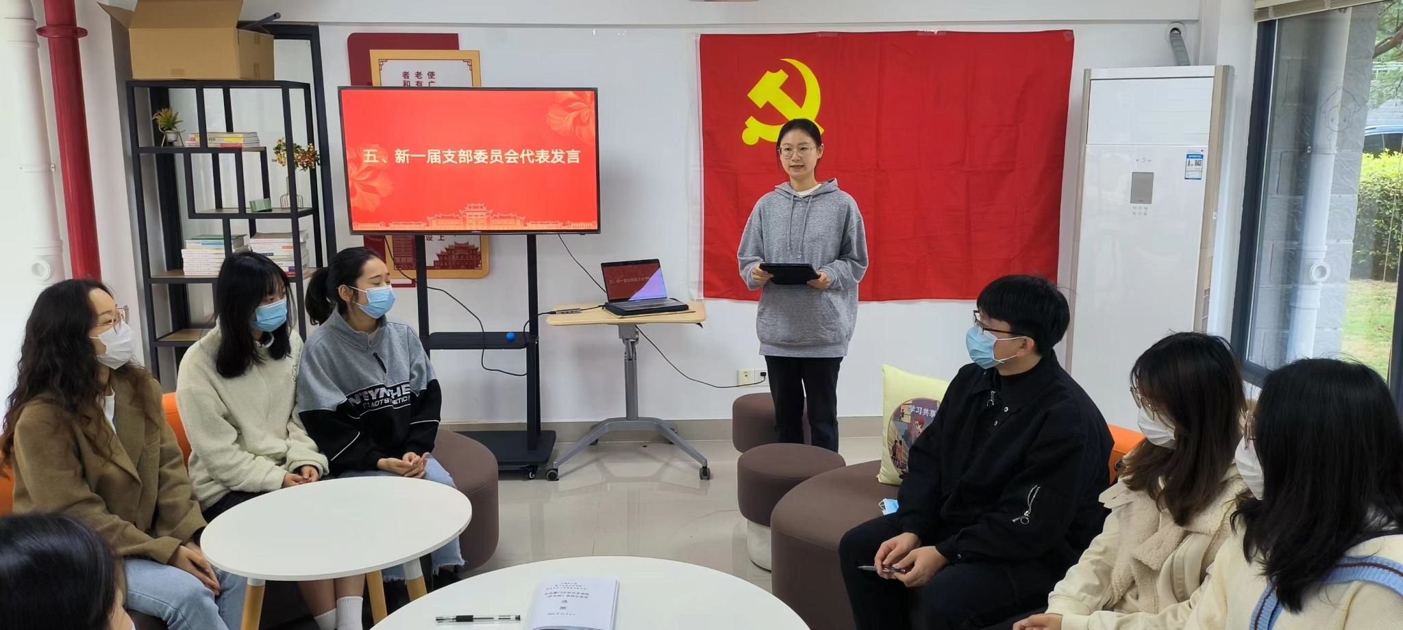 紧接着,林颖菁同学代表艺术乐动(中国)研究生第一党支部委员会委员进行表态发言,她指出,全体党支部委员一定不负众望,以身作则,全力以赴做好支部工作。狠抓政治理论学习,注重支部思想锻造;落实工作责任制度,全面推进党建工作;投身志愿服务,重大项目勇挑在肩。以饱满的热情,务实的态度,扎实的作风面对未来的各项工作。