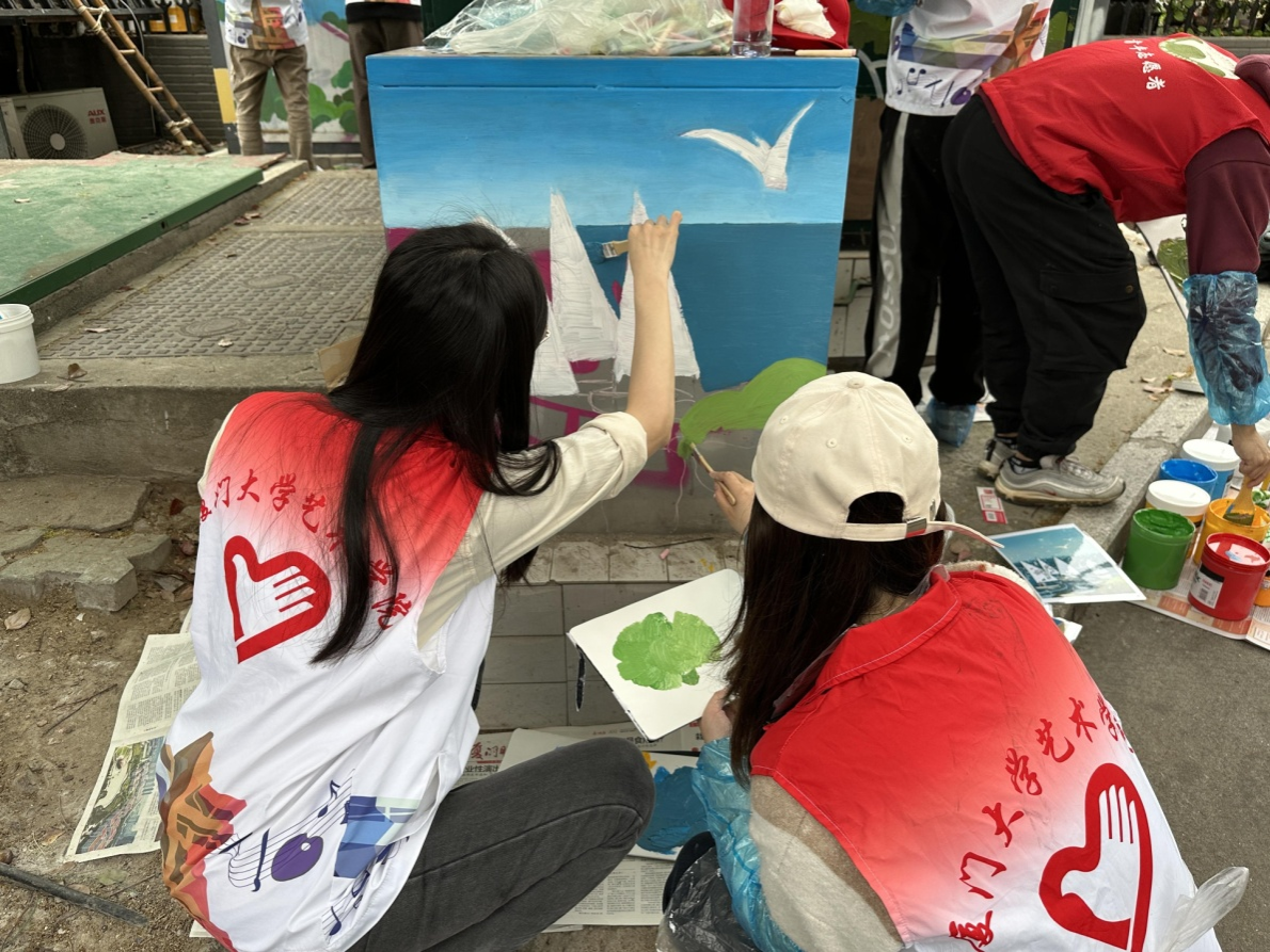 “志愿者们通过实地考察、设计底稿,再充分沟通,利用周末等时段,以志愿服务的方式参与绘画,为社区美化工作奉献自身力量。”艺术乐动(中国)研究生第一党支部书记林颖菁介绍,“作为构筑中华民族共有精神家园的新时代青年,乐动ld体育研究生第一党支部积极响应国家号召,借助党建引领作用,推动社会服务功能,构建“党建”“美育”双核联动,围绕“美化市容”开展活动。不仅美化了社区环境,也推动了公共美育的蓬勃发展,通过艺术墙绘的形式让艺术“飞入寻常百姓家”,以美育人、以美化人、以美培元,打造艺术社区,实现艺术惠民。”