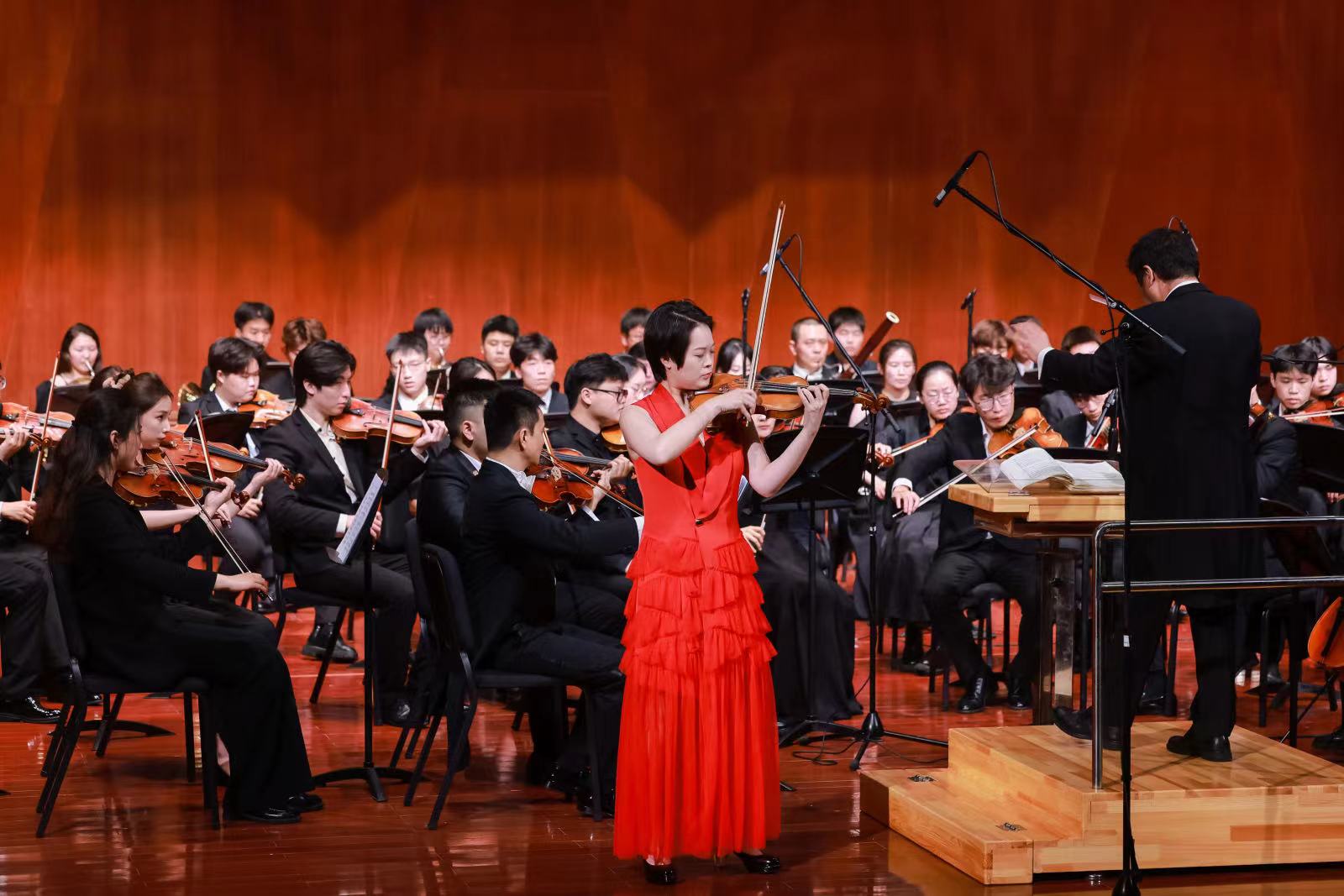 弓弦时而抒情时而激烈,管鸣时而似水时而如火,协奏与独奏相互配合,天籁之音在音乐厅之中环绕,布鲁赫的激情,圣·桑的浪漫,柴可夫斯基的生动多情,在指挥棒的挥舞之下展现得淋漓尽致,一件件乐器此起彼伏,呈现出音乐的海洋。
