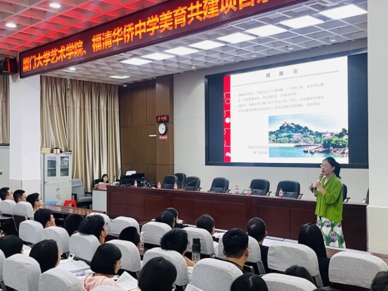 2024年11月4日下午,音乐系副主任(主持工作)、音乐理论教研室主任杨绿荫副教授为福清华侨中学师生带来了《福建华侨音乐家的爱国情怀》的主题讲座。活动由福清华侨中学副校长林心松主持,校长助理薛韦韦、政教处副主任陈友枝、全体音乐组教师以及高一年段学生代表参加学习。