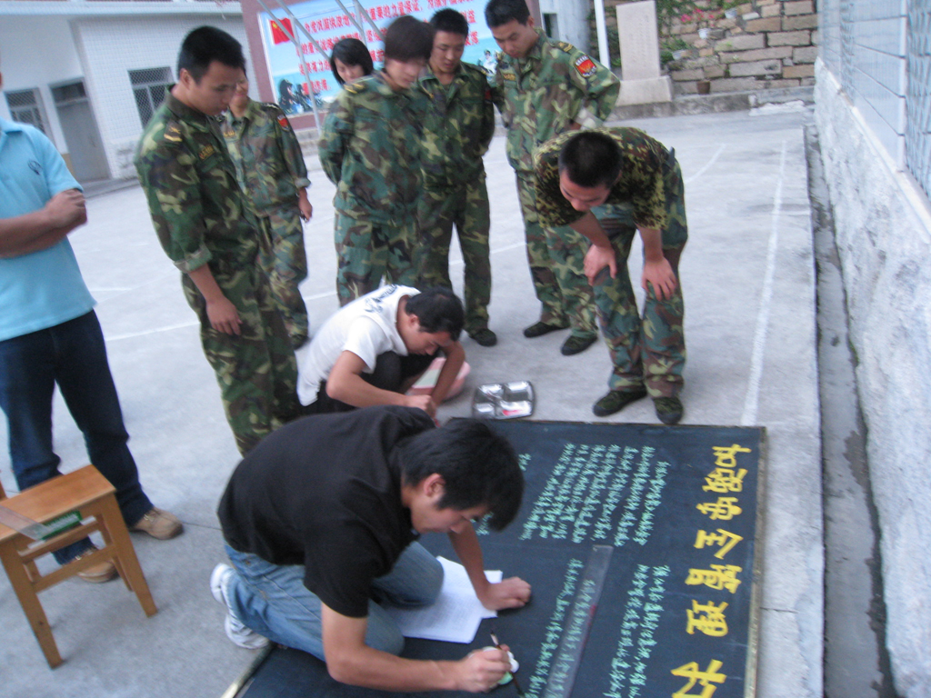 警备区通信连的司务长胡海星和排长周蕾热情地接待了同学们,双方进行了第一次座谈,之后,党员同学利用专业所长为通信连出版了板报。经过同学们仔细筹划和认真排版后,一期被通信连战士公认为最出色的板报完成了。厦门警备区通信连与乐动ld体育美术系本科生第二党支部建立共建关系,缘于支部中的一名党员李可润,他曾经在大二的时候参军,在厦门警备区中锻炼了一年,对军队有了深厚的感情。在他与战友的牵头下,美术系本科生第二党支部很快与厦门警备区通信连建立了共建关系,商定将定期开展活动。将艺术带入军队,改变军队的单调生活。而学习军队严格的纪律,过硬的作风,也正是艺术学子迫切的需要。双方相信通过共建,将促进军民的友谊。