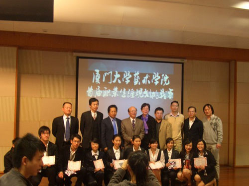 2008年12月28日上午九时整,艺术乐动(中国)首届职业生业规划挑战赛决赛在漳州校区小报告厅顺利举行。出席本次大赛的评委有:厦门市教育基金会顾问、厦门市老教授协会理事兼顾问、厦门优丽机构董事长、乐动ld体育兼职教授吴乔治,国贸集团副总裁、党委副书记卜舒娅,厦门鑫盛捷企业有限公司董事长张云峰,厦顺铝箔副总裁江秀心,齐安医疗机构总经理胡明越,福建省佳美集团厦门敦海艺品有限公司董事总经理苏逸侃,准信机电副总裁宾强、准信机电总经理吴文春,厦门瑞融贸易有限公司总经理王炜。艺术乐动(中国)党委副书记李招淡担任仲裁评审,同安区教育局副局长陈前,辅导员张秀丽、张宇斌也出席了比赛并为选手们助威加油。