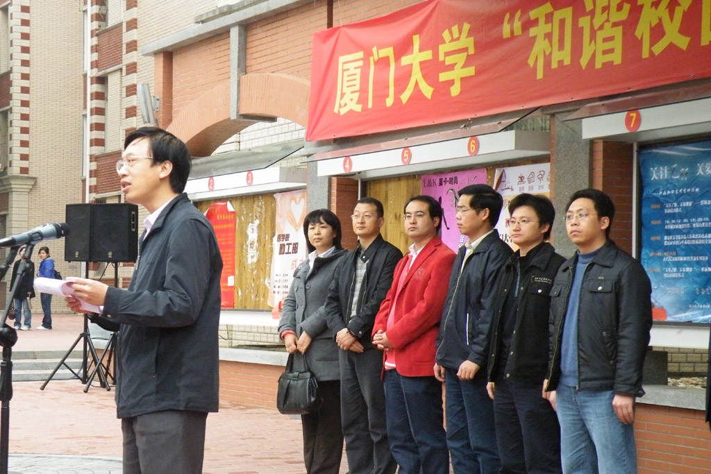 3月8日上午九点,我院青年志愿者代表在团委书记黄辉老师的带领下出席了我校在三家村学生广场隆重举行的“厦门大学‘和谐校园,青春先行’2009志愿服务启动仪式”。校党委副书记、校青年志愿者协会名誉会长、副校长辜芳昭,学生处处长林东伟,党委宣传部副部长徐进功,团委副书记陈雪玲、张清榕,以及各乐动(中国)共青团干部及各乐动(中国)青年志愿者代表共同出席了此次启动仪式。仪式由共青团厦门大学团委书记高忠华主持。