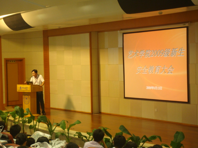 9月13日15:00,艺术乐动(中国)2009级新生安全教育大会在漳州校区小报告厅举行。艺术乐动(中国)党委副书记李招淡,团委副书记曹璐,辅导员张宇斌、李新元,教学秘书刘明瑞,全体09级学生参加此次会议。