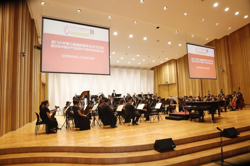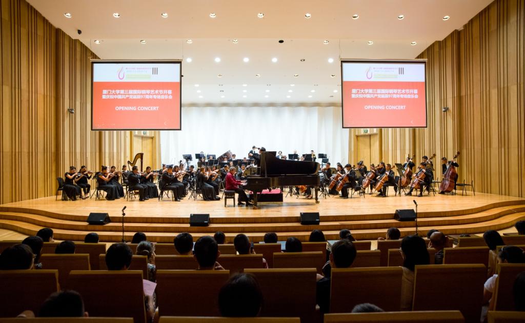 7月1日晚,厦门大学第三届国际钢琴艺术节开幕暨庆祝中国共产党诞辰97周年专场音乐会在科艺中心音乐厅举行。活动由艺术乐动(中国)副院长陈舒华教授主持,校党委常委,宣传部部长徐进功致辞并宣布“厦门大学第三届国际钢琴艺术节正式开幕”。