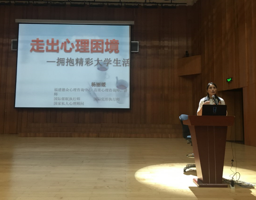 为了让新生们更好地适应大学生活,更好地开展学习和活动,我院邀请厦门市著名心理咨询师杨丽媛老师于12月18日下午16.30在艺术乐动(中国)新音乐厅开展“走出心理困境,拥抱精彩大学生活”的心理专题讲座。讲座吸引了本科生、研究生新生和各年级心理委员以及其他感兴趣的同学300余人参加。院团委副书记游璐昀、辅导员张秀丽、王延斌、谢芃出席了此次讲座。讲座由乐动(中国)党委副书记邹江涛主持。讲座开始之前,表彰了在第十届厦门大学校园心理剧大赛中代表艺术乐动(中国)参赛,历史上首次进入决赛并获得三等奖的同学。