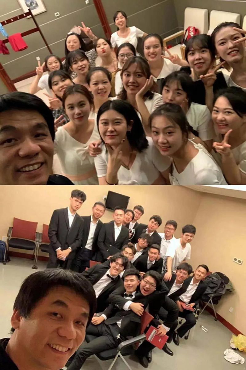 图为演出当日陈舒华副院长在后台与合唱团成员的合影,他的到来给即将登上会展中心音乐厅的成员们注入了一剂定心丸。