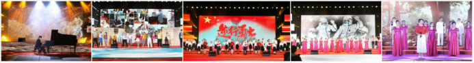 接下来艺术乐动(中国)副院长陈舒华教授演奏钢琴独奏《黄河颂》,音符律动,歌颂中华民族不屈不挠、众志成城的战疫力量,激发艰苦奋斗、为国奉献的家国情怀。之后依次上演歌曲联唱《你笑起来真好看》,编排为青年教师李鑫、杨帆,表演者为院团委副书记林轶凡,2018级硕士研究生方舒晴、杨怡婷和2016级本科生陈凌宇、任乔驿等人,作为艺术工作者、时代精神的记录者,他们满怀激情地为战疫青年唱响青春之歌;诗朗诵《你是我的英雄》,领诵为储备辅导员谢芃等,用文字的魅力,声音的力量抒发对战疫工作者的敬爱和赞美之情;歌曲《英雄赞歌》,领唱是音乐系张宇恒副教授;大合唱《歌唱祖国》,领唱是2018级本科生田泽涵,动听嘹亮的歌喉,唱颂热血的青春,唱颂亲爱的祖国。