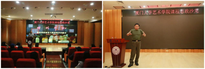 美术系连明生教授和音乐系周显宝教授先后结合专业授课分享课程思政建设经验。连明生以“时代印记”为题,在讲授篆刻简史、印稿设计、篆刻的手法和实践等课程内容时,融入对中国汉字演变介绍和中华传统文化释义,引导学生树立文化自信。周显宝以《世界音乐史》课程为例,在讲授中通过对比越南、土耳其音乐和中国音乐,阐明音乐是直击灵魂的艺术,可以通过引发情感共鸣打通国际政治、经济、文化交流渠道,指出艺术是构建人类命运共同体的重要支点。同时,他还引导学生胸怀祖国、放眼世界,兼容并蓄,讲好中国故事。