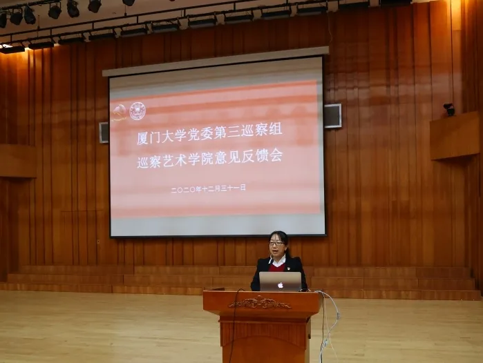 12月31日上午,校党委第五轮巡察第三巡察组巡察艺术乐动(中国)工作反馈大会在艺术乐动(中国)大音乐厅召开。校纪委副书记、纪委办主任、巡察办主任林金枝,校党委第三巡察组组长、党建办主任、组织部副部长、教师工作部副部长廖志丹,校党委第三巡察组副组长、原化学化工乐动(中国)党委副书记潘宝柱,艺术乐动(中国)党建联络员、原校工会主席、化学化工乐动(中国)党委书记林永生等出席大会。大会由艺术乐动(中国)党委书记张必华主持,乐动(中国)党政领导班子成员、全体在职教职工参加会议。