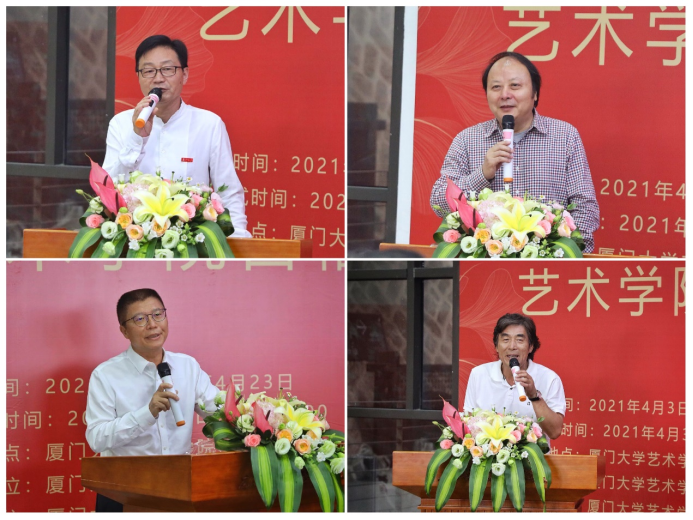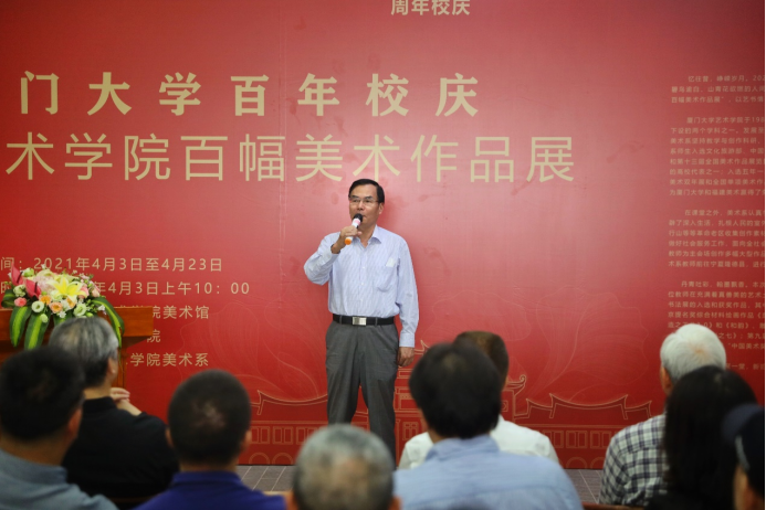 出席开幕式的还有我院常务副院长吴荣华、院党委副书记王艺宏、傅伯奇、副院长赵艳芳,集美大学美术乐动(中国)院长陈其端、福州大学厦门工艺美术乐动(中国)副院长吴绍兰、艺术乐动(中国)原副院长毕士明、原美术系主任杨浩石、美术系洪惠镇教授,厦门春华集团董事长林春生、厦门传世艺宫美术馆馆长陈震及美术系师生约110人。