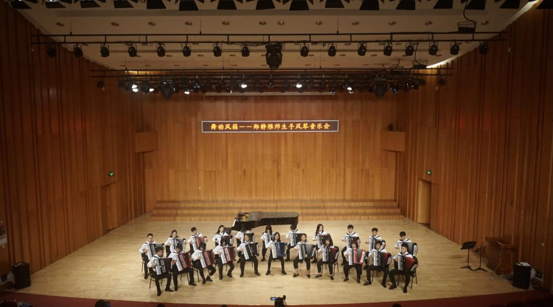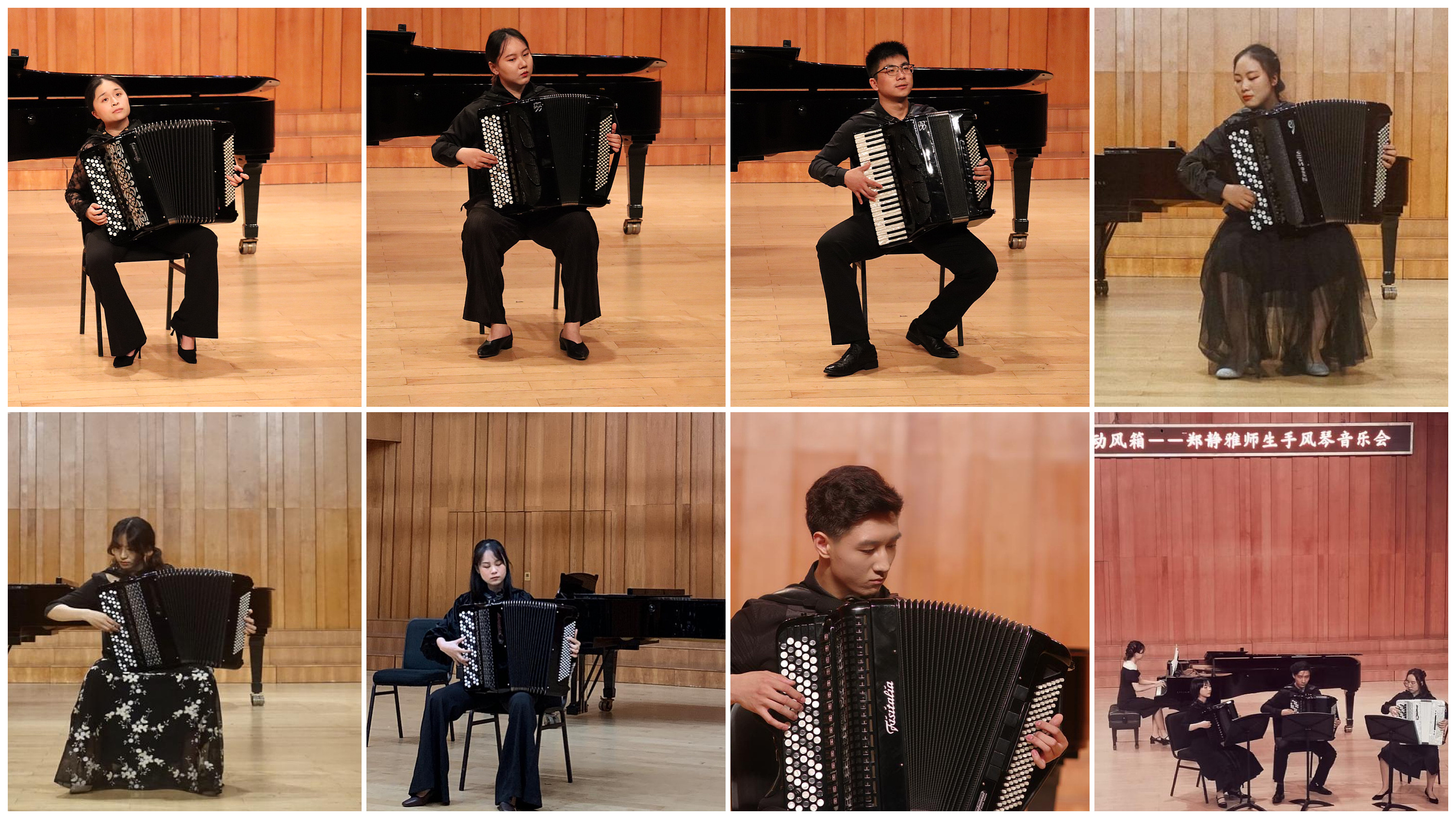 音乐会精心挑选了各个时期不同风格的作品,从J·S.巴赫到佐洛塔耶夫、谢苗诺夫、维克多·弗拉索夫,与听众们共同“漫步”于古典、现代、爵士手风琴音乐中,呈现出手风琴风格多样的一面。音乐会渐进尾声,郑老师与在校手风琴专业学生一同演奏由西班牙音乐家玛奎纳作曲、我国著名演奏家张国平改编的手风琴曲《西班牙斗牛士》,铿锵有力的节奏、激昂振奋的旋律描绘了斗牛士英勇威武的姿态。