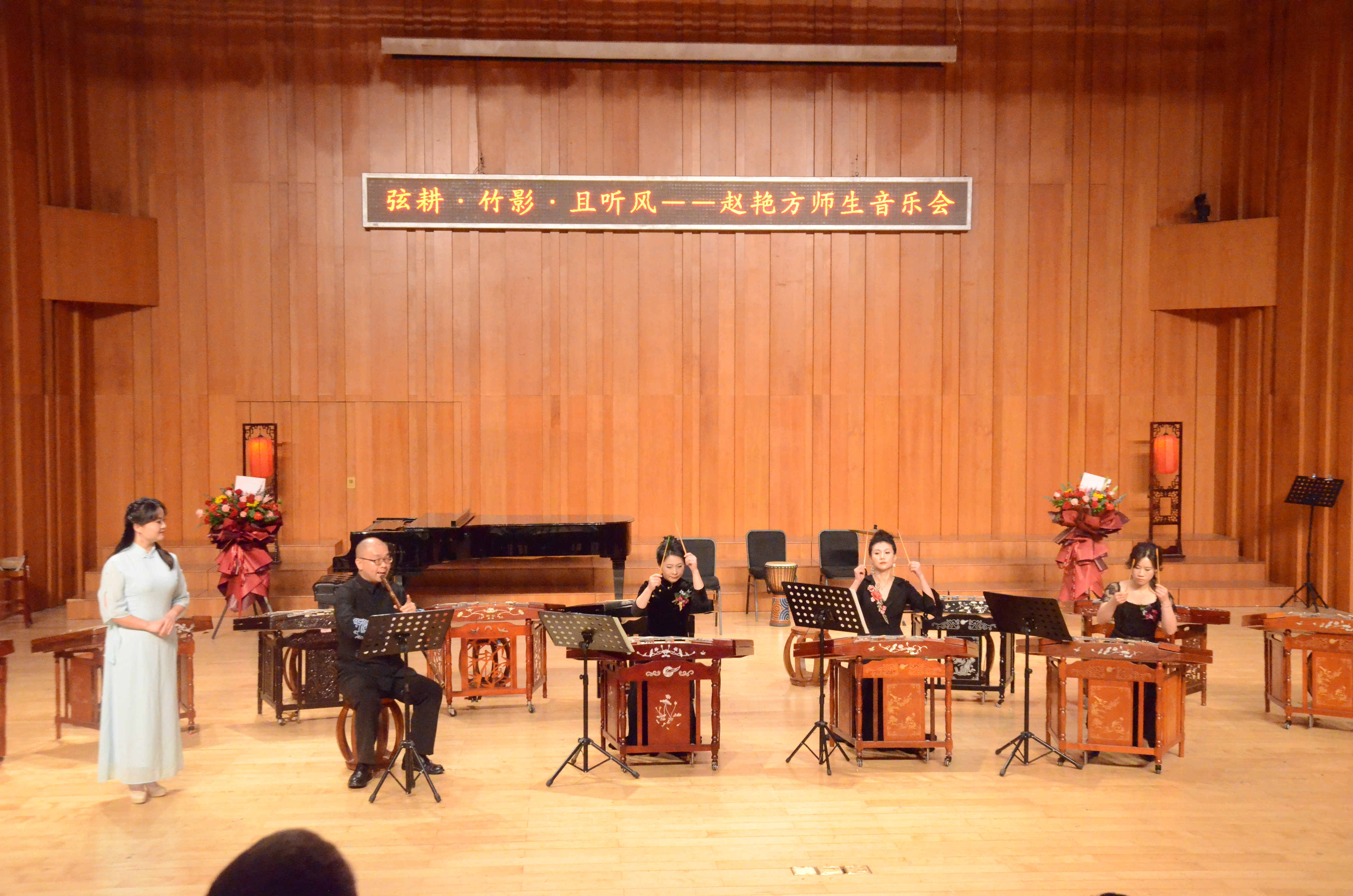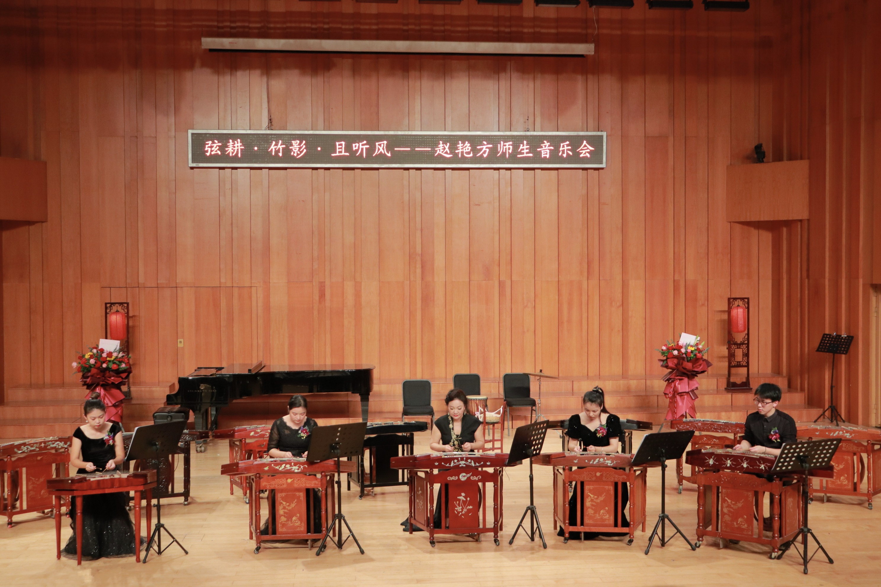 “音韵绵长”篇章——与观众一同分享中国传统音乐带来的美妙神韵。在课堂教学中,守正创新,赓续发展,学习传统是一个十分重要的基础课题。因此本次音乐会“音韵绵长”篇章特意选取了四首经典的传统乐曲:四川扬琴传统乐曲《将军令》、广东扬琴传统乐曲《平湖秋月》《旱天雷》、东北扬琴传统乐曲《苏武牧羊》、古曲《春江花月夜》。其中,赵艳方教授演奏的《苏武牧羊》,使观众们都被东北扬琴吟柔滑颤的独特韵味所感染,赞许纷纷、掌声如潮。