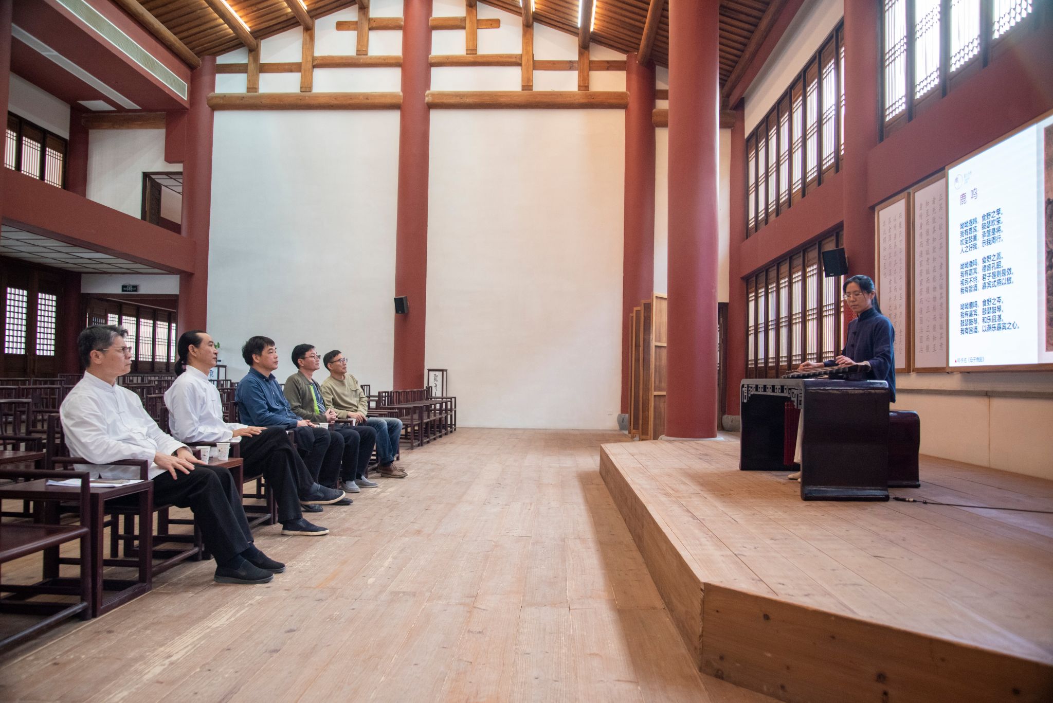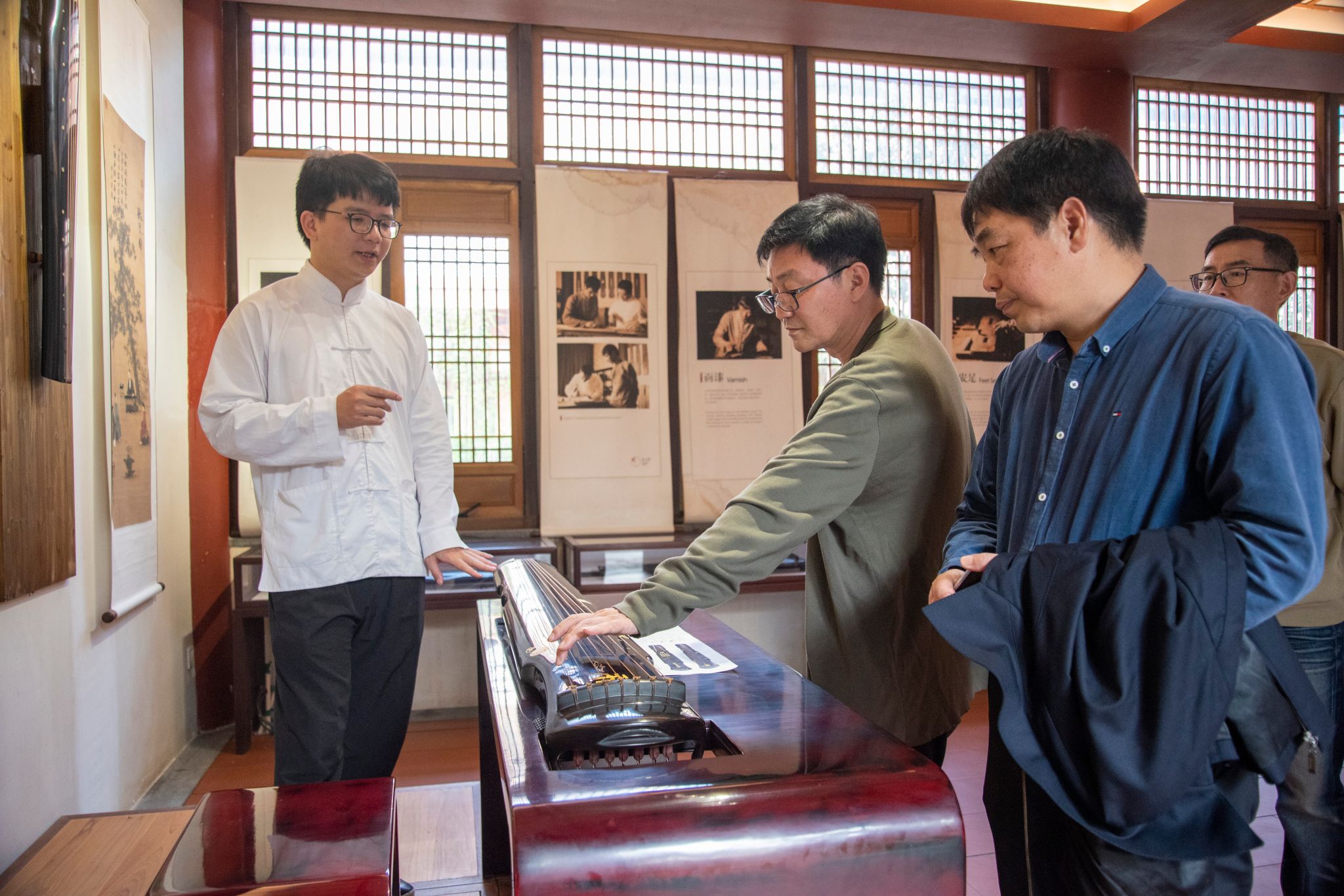 张必华书记一行首先参观福建省龙人书院的琴圣堂,了解代表性琴人及古琴文化发展脉络。随后在书院讲堂听取龙人古琴发展历程介绍,并欣赏古琴琴歌《鹿鸣》。随后,在斫琴展厅了解选材、定型、槽腹、髹漆、安足、上弦等古琴制作的工序。接着移步百琴堂,欣赏由斫琴家谢建东先生精心斫制、受到当代琴家喜爱和认可的精品古琴。张必华书记提出乐动ld体育与龙人古琴研究院,发挥各自在学术、科研、教育、实习实训等优势,走高品质产-学-研合作之路。