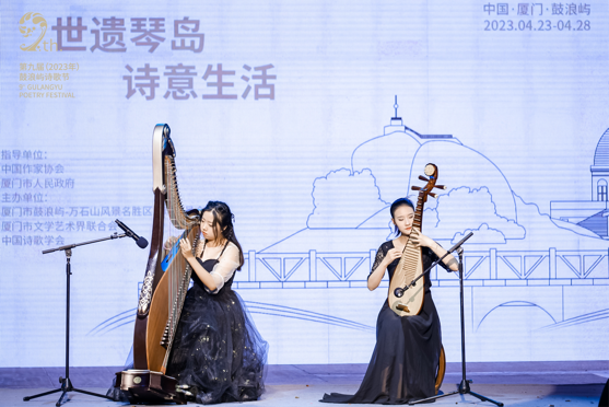 4月23日晚,伴着悠扬的琴声歌声,一曲别致的南音表演《直入花园》敲开了第九届(2023年)鼓浪屿诗歌节开幕晚会的序曲,也宣告诗歌节正式开始。