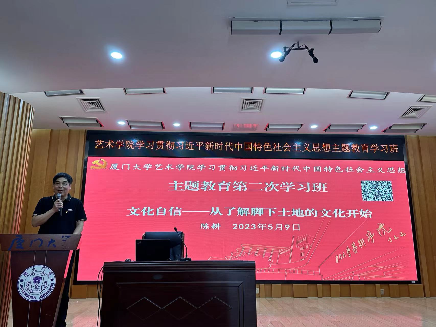 5月9日下午,艺术乐动(中国)学习贯彻习近平新时代中国特色社会主义思想主题教育第二次学习班在艺术乐动(中国)小音乐厅举行。厦门市闽南文化保护发展专家委员会副主任陈耕教授以“文化自信——从了解脚下土地文化开始”为题做专题讲座。主题教育巡回指导组组长梁卫中、副组长张秀丽、乐动(中国)处级党员领导干部、全体师生党员参加讲座。院党委书记张必华主持。