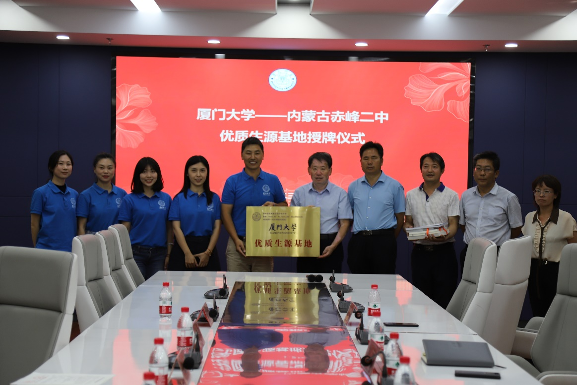 锡林浩特六中、赤峰二中及通辽五中均是内蒙古自治区重点中学,三所学校的一本率均高达80%以上。在授牌活动中,刘晓峰介绍了厦门大学整体办学情况、“四种精神”、就读体验、录取条件等相关信息,并特别强调了从萨本栋校长开始,厦大与内蒙古的不解之缘。通过开展“厦门大学优质生源基地”授牌活动,希望与在蒙重点中学建立长久的合作关系,为厦门大学输送更多优秀人才。