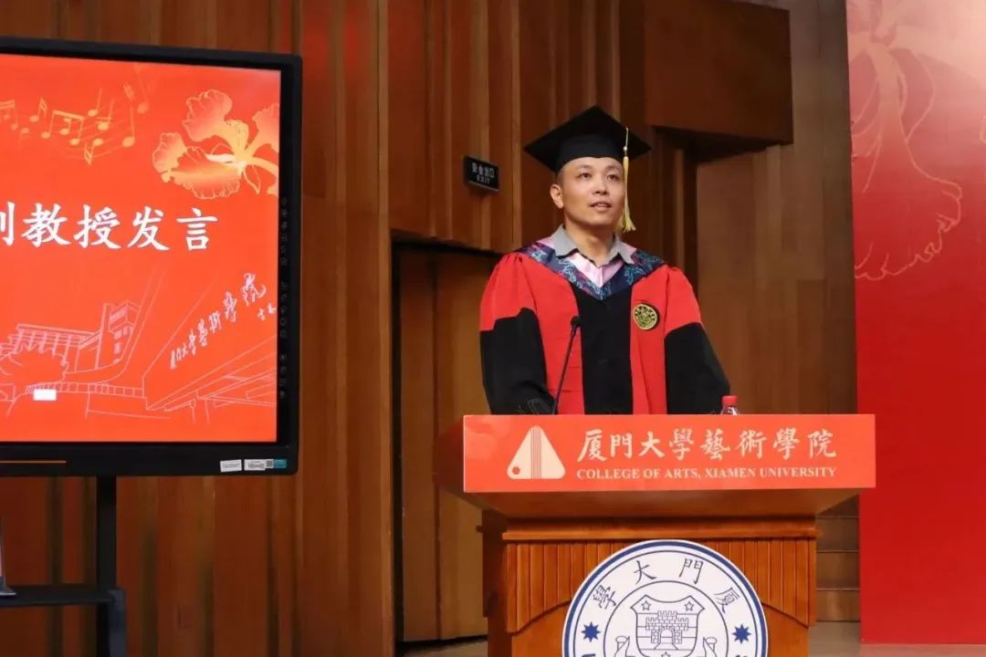 在今天这个重要的日子,一路引领和陪伴的教师也送上了嘱托和祝福。陈金华教授、郭伟副教授作为教师代表发言。陈金华教授深情寄语同学们,希望大家能仰望星空,脚踏实地;脱下长衫,强大内心;继续学习,结交良友,成就人生,在各行各业上展现出厦大人的风采;而在这个梦想启航的时刻,郭伟副教授勉励同学们要树立远大志向,他分享了诗人汪国真的一段话与大家共勉:“我不去想是否能够成功,既然选择了远方,便只顾风雨兼程”。