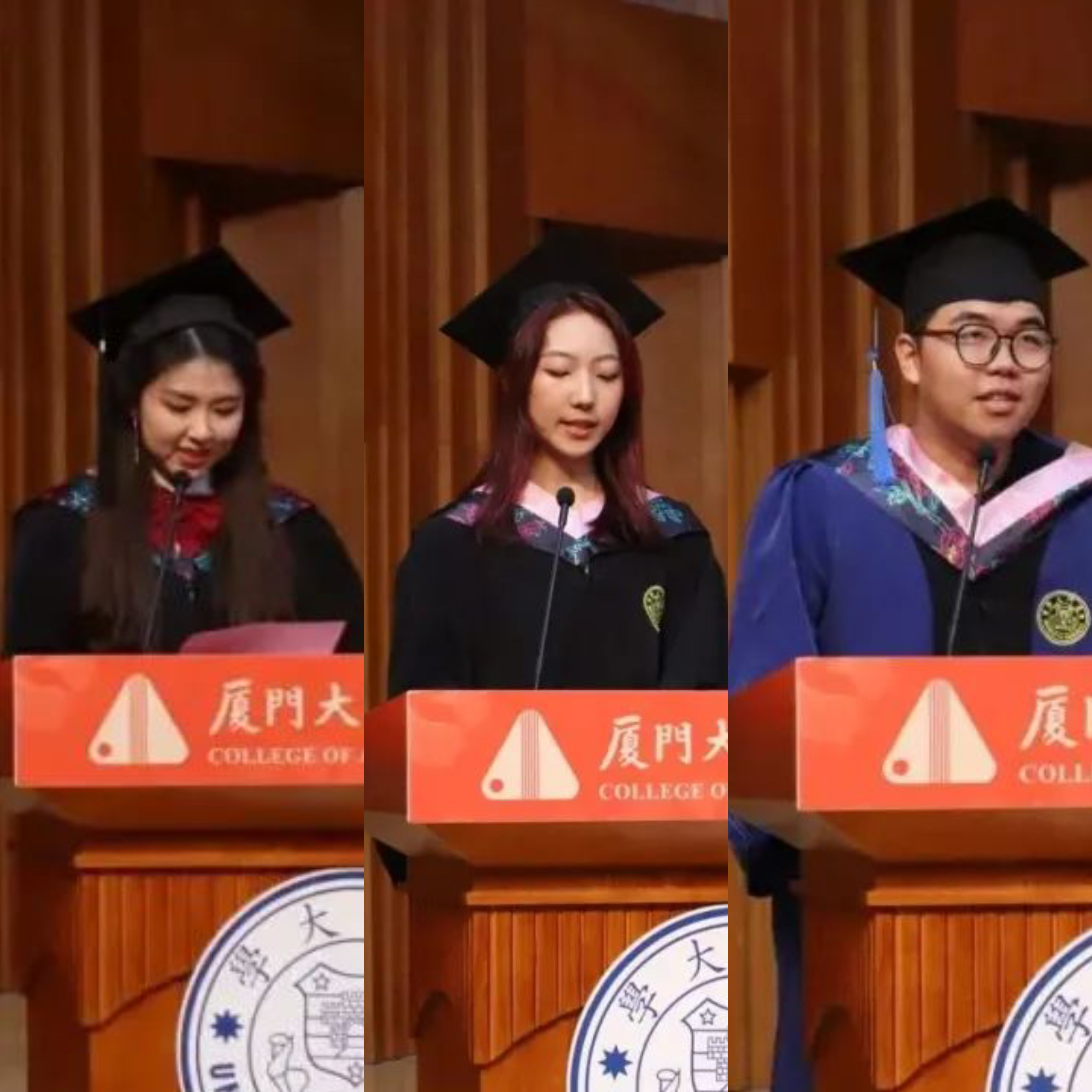 本科毕业生代表郑怡、景馨逸同学,研究生毕业生代表王肇兴同学发言