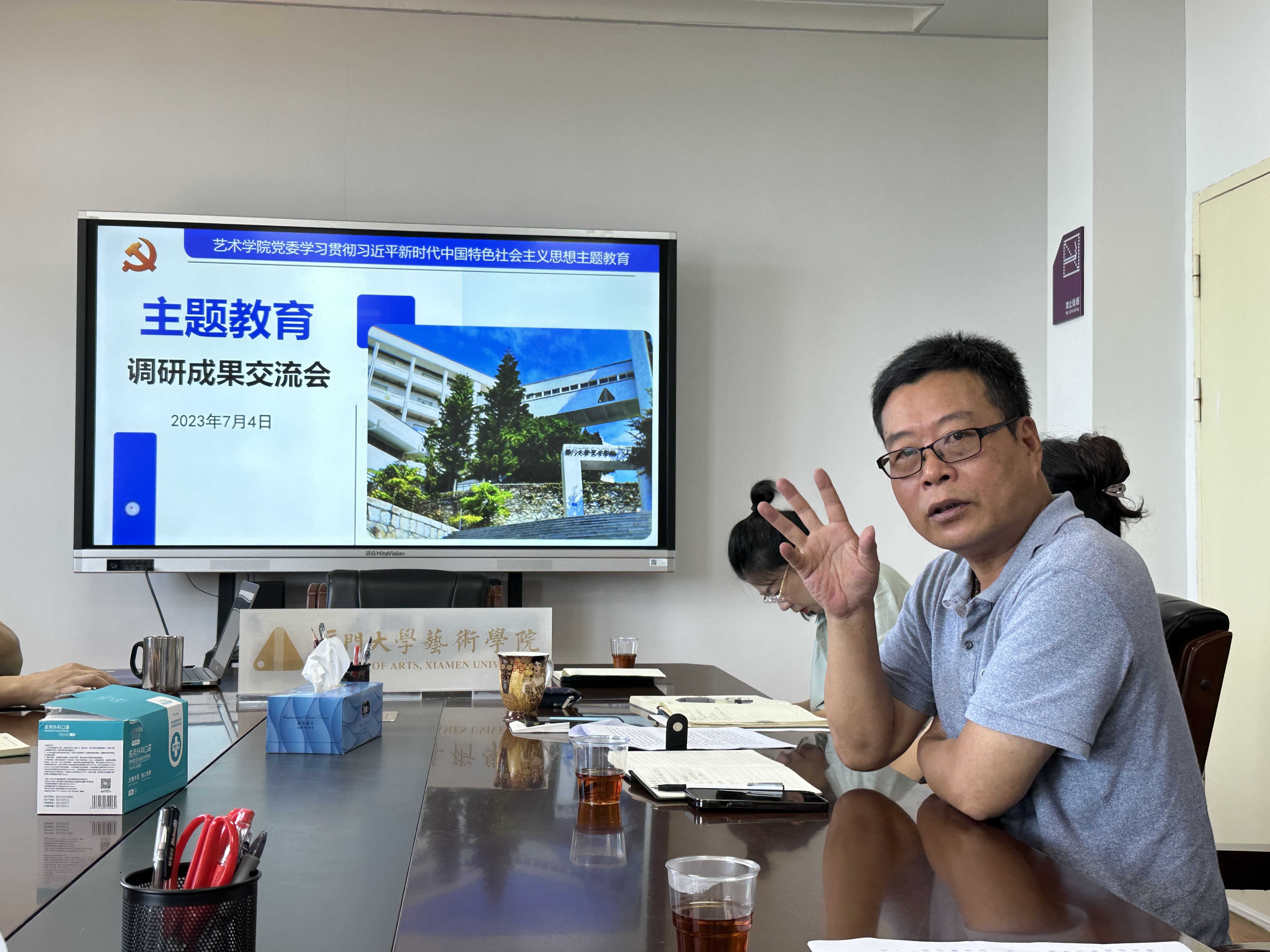 为进一步推动学习贯彻习近平新时代中国特色社会主义思想主题教育走深走实,7月4日上午,艺术乐动(中国)调研成果交流会在A411举行。第一巡回指导组副组长张秀丽、党建工作联络员林永生、乐动(中国)党委委员、系负责人、党支部书记、党务秘书等参加会议。院党委书记张必华主持交流会。