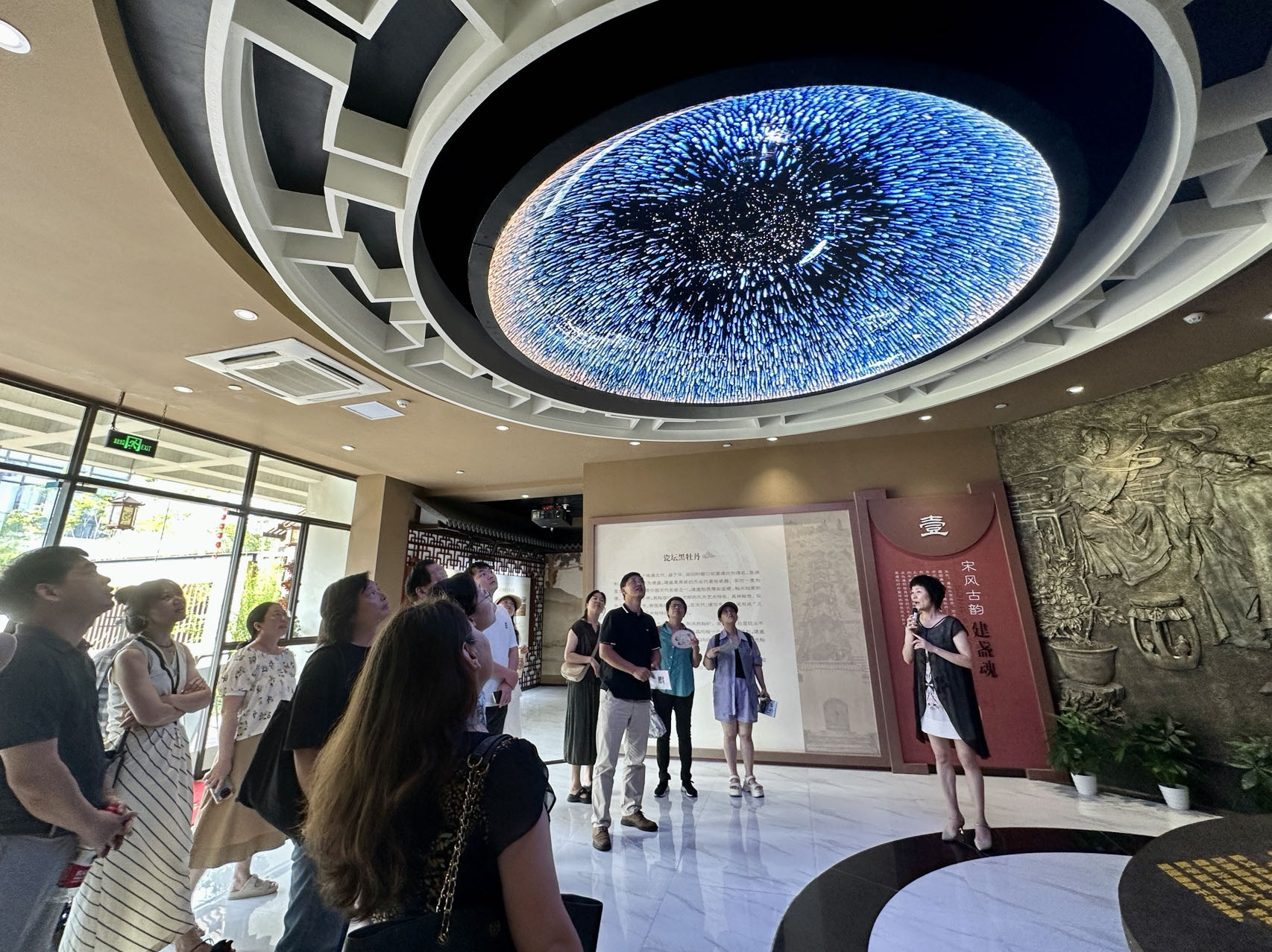 连日来,师生党员寻访南方地区发现年代较早、规模最大且保存最完整的古汉城遗址;走进闽学发源地,始建于南宋的考亭书院;前往中国历史文化名镇——五夫镇,遍访紫阳楼、兴贤书院、朱子像等,深入学习博大精深的朱熹理学思想和朱子文化中蕴含的礼教、家风等宝贵精神财富;走进建盏文化园,领略建盏独特的历史内涵和宋代特有的文化品位。实践学习还颇具艺术特色,美术系陈金华教授、何专连副教授体验点茶作画,还考察了五夫荷塘写生基地;古埙传承人,音乐系赵亮老师在古汉城遗址吹响千年陶笛,意蕴悠长……