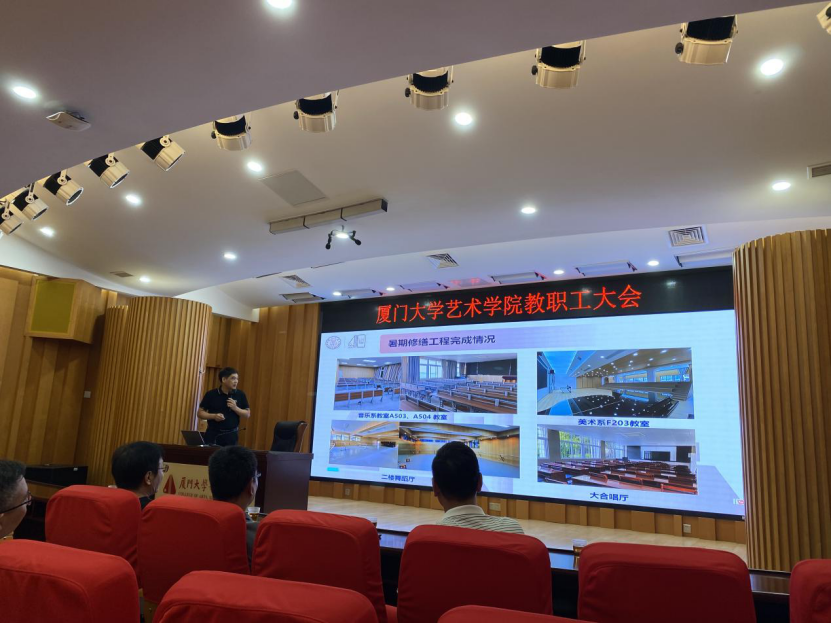 随后,张必华书记对暑期修缮工程完成情况进行通报。2023年8月起,乐动(中国)针对音乐厅、舞蹈厅、琴房及部分教学场所进行修缮改造,目前修缮改造工程已完成,乐动(中国)焕然一新,以崭新姿态迎接建院40周年的到来。