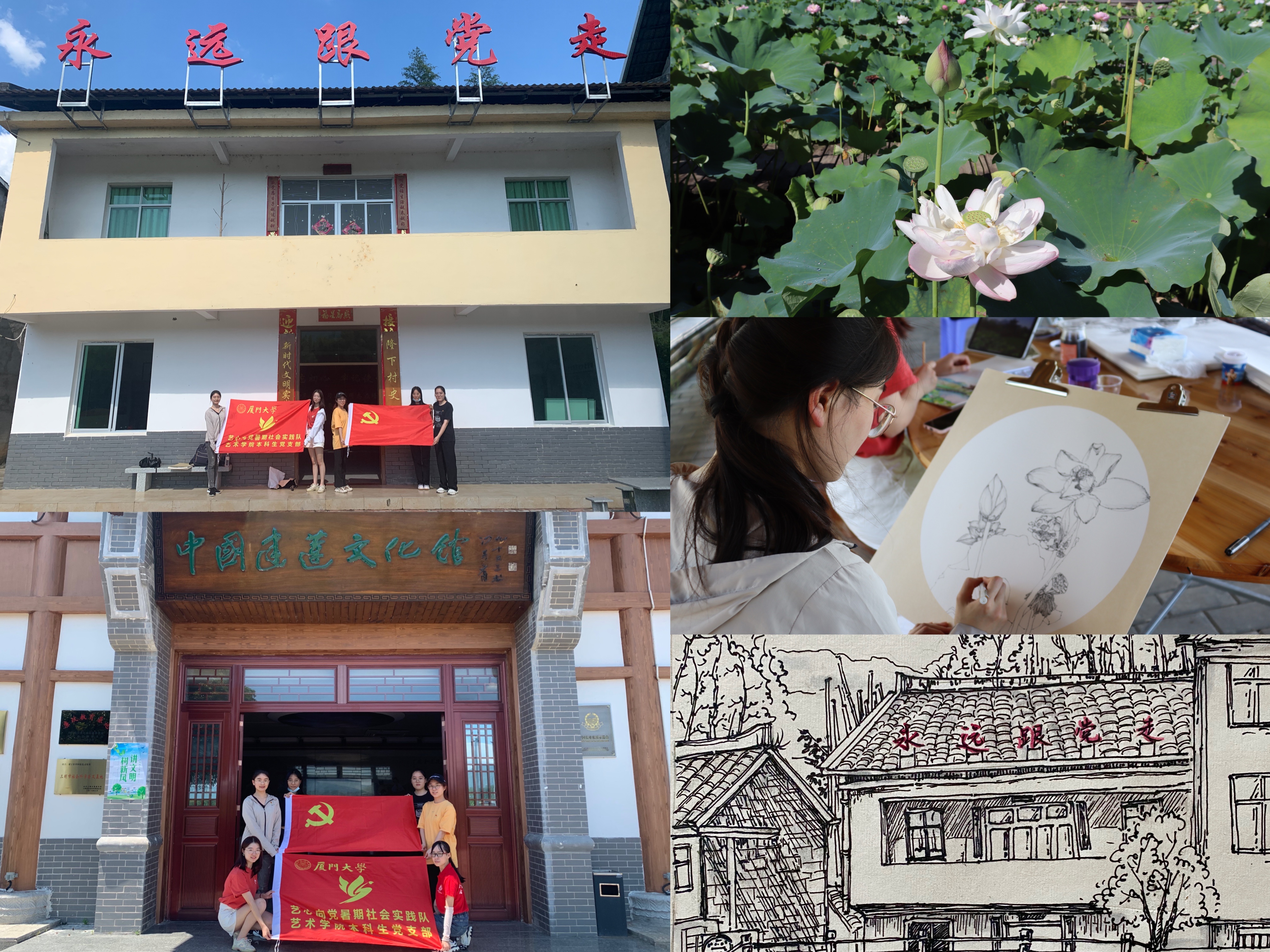 7月底,乐动ld体育本科生党支部“艺心向党”暑期社会实践队来到了革命老区建宁县进行为期三天的实践考察。建宁作为原21个苏区中央县之一,拥有深厚的红色文化底蕴和众多革命历史遗迹,实践队员在实践期间参观反围剿纪念园、隆下村村史馆、黄坊乡将上村少共国际师陈列馆等地,通过党课、座谈会等与当地团县委部门进行深入交流学习,同时发挥专业优势用手中的画笔在建宁修竹荷苑和隆下村等地进行艺术创作,描绘建宁美丽风光,助力美丽乡村建设。