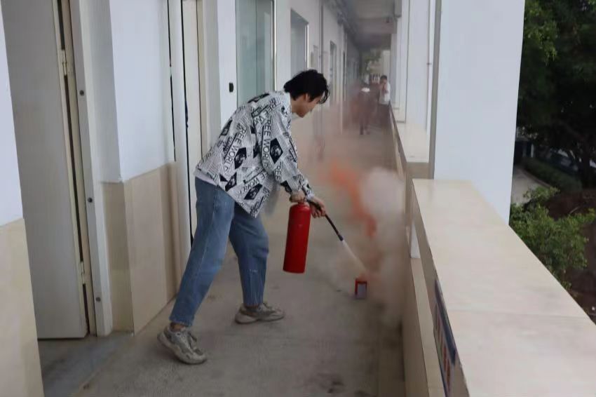最后,保安员汤良坤打开消防应急广播“模拟火灾成功扑灭,消防演练结束,大家可以有序返回实验室。”师生们脸上洋溢着胜利的微笑,大家又恢复了正常的学习和生活。
