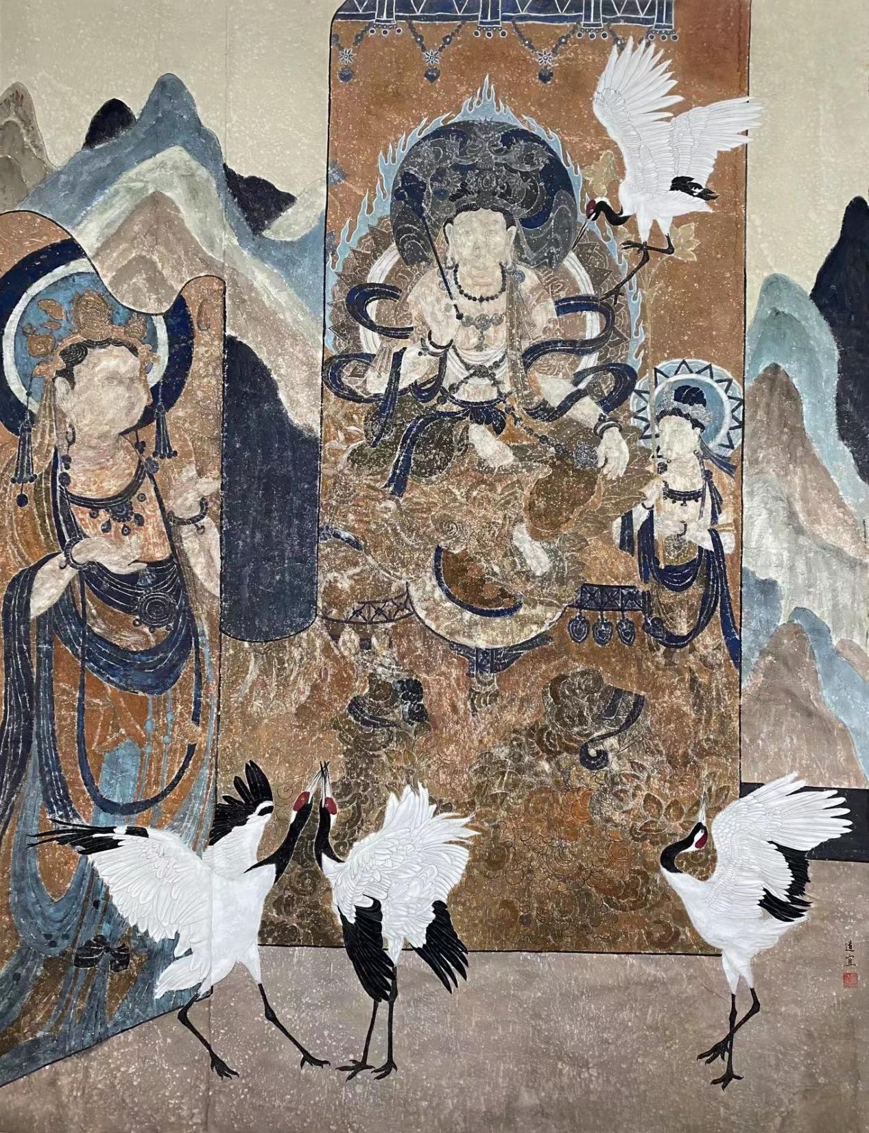 卢道宜/《敦煌之恋》/纸本设色/165cm*212cm